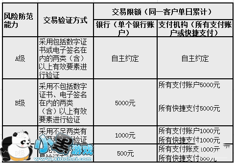 由于易被篡改和携带木马或病毒,支付风险最高,风险防范等级最低,为D级。无论使用何种交易验证方式,同一客户单个银行账户或所有支付账户、快捷支付单日累计交易金额应不超过500元。