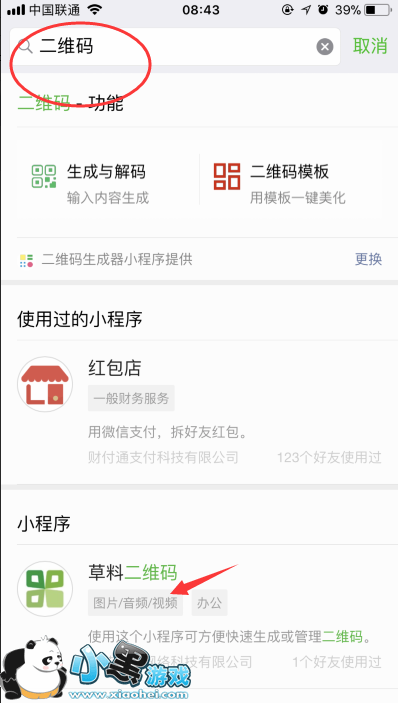 2、搜索二维码关键词,点击进入你最感兴趣的二维码生成器小程序;