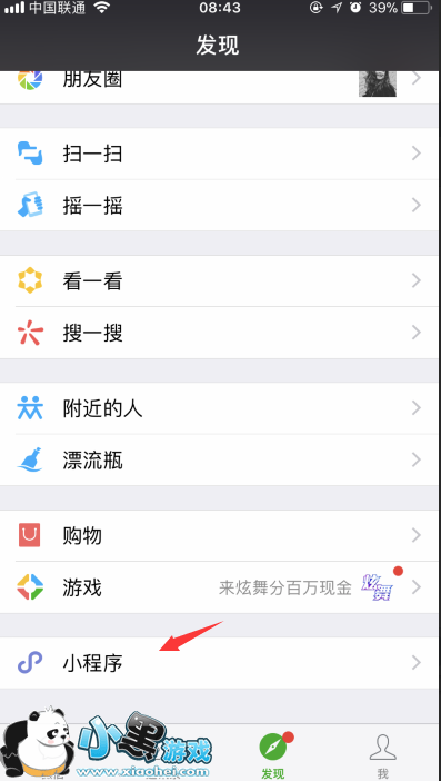 1、首先,在发现里打开小程序;