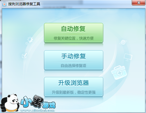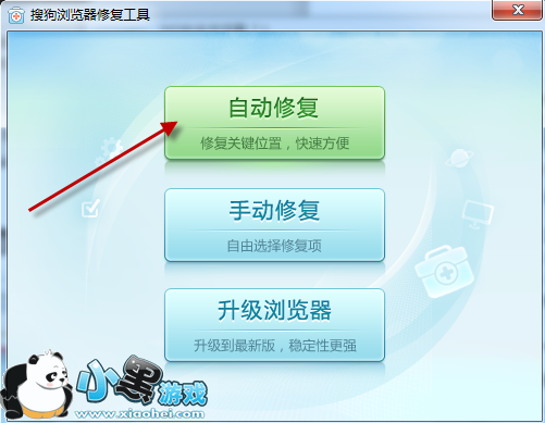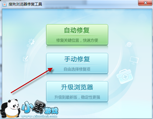 4、选择浏览器修复工具后,后出现自动,手动和升级选择按钮