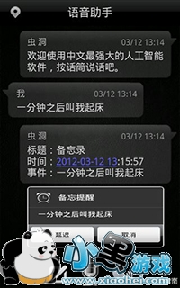 小编点评:现在的软件是越来越追求人性化了,虽然语音从iphone开始就是个热门的应用,但是国产里还没几个好用的语音软件,虫洞助手还行,识别率还算高,关键是语音提醒非常不错啊。