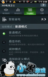 - 让电量更持久:睡觉时不需要使用电话功能?外出时快要没电又必须保持电话畅通?全部可以用省电模式解决,根据不同的场景应用最适合您的节电模式,极大延长电池使用时间。
