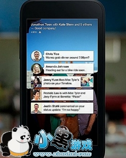 Facebook Home启用后,来自Facebook动态消息(News Feed)的图片会覆盖到整个屏幕。扎克伯格称大家可以通过人而不是程序看见世界。拥有Home之后,大家可能就不再需要Facebook程序了。