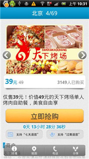 小编点评:现在最实惠的购物方式就是团购啊!团购里面最知名的就是美团啦!不仅活动多多,而且团购人数也多,不愁找不到可以团购的东东,手机客户端更是集便捷、更新力度强,实在是购物必备!