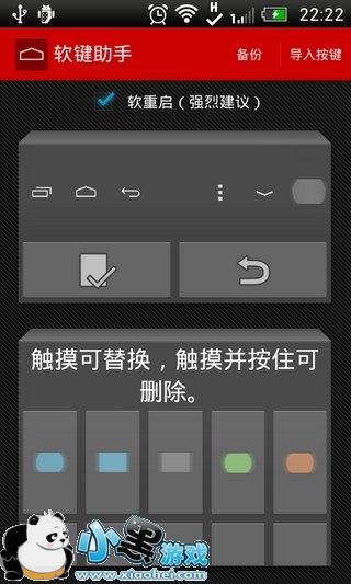 SoftKeyZ(软键助手)能轻松快速地更改Android 4.x设备上的导航栏按键/软键,拥有超过150种不同的按键可供选择。SoftKeyZ的使用方法也非常简单,只需触摸列表中的按键图标就能修改。
