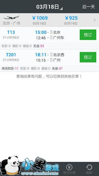 智行火车票搜索界面