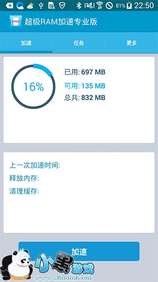 超级RAM加速专业版拥有最直观的用户界面,方便您快捷的一键加速您的手机,释放RAM!适合小运行内存的设备使用!