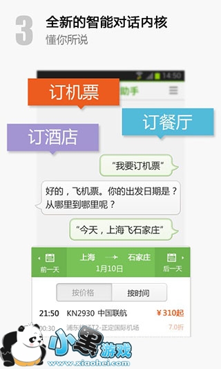 - 搜索信息:查询天气,查询航班,查询周边美食,搜索股票等
