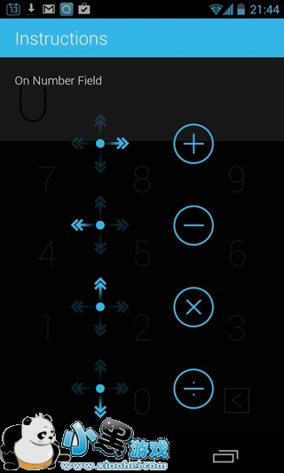 滑动计算器 Swipe Calculator 小编第一眼就觉得这货不该是个计算器,因为除了数字之外完全看不到任何运算符号。尼玛啊,这难道是用脑波控制加减乘除运算的神器?残酷的事实告诉小编,无论我心里在想什么都不会显示到屏幕上。从名字看,滑动计算器?唔,我想我大概明白是怎么一回事了。