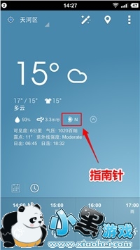 下图是应用的主界面,它提供了诸如温度、风速、可见度、气压、露点、紫外线强度、日出日落时间、穿衣指数,更加丧心病狂的是,它把指南针也给做进去了,转动手机,它会指南!好吧,服!