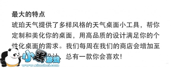 小而美小而轻的美名冠与琥珀天气可以说是丝毫不夸张,而且这款天气软件不会像文章开始提到的那些老牌软件都有往社交偏离的本质,感觉上就像是便宜了自身的定义。天气虽小,可不能忽视。这就是小编为何给大家推荐琥珀天的原因。