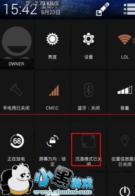 第二步:要打开手机状态栏自动沉浸模式,只需要下滑状态栏,在设置中找到状态栏沉浸模式开关打开即可。如果是不支持设置的手机,就需要用到X框架。这个小编以后会和大家说如何开启。