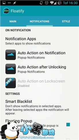总是看到别人来短信时那个酷炫的悬浮窗口有没有很羡慕嫉妒恨?为了让大家也能在原生的Android系统上享受一下悬浮提示的待遇,小编下面就给大家介绍一款浮动通知专业版 Floatify,只要设置的得体,各种通知都能以浮现的方式展示出来哈哟。