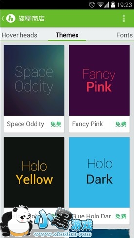 HoverChat 本身支持多种主题,主题可到商店中下载。另外商店中还提供头像框与字体下载,下载完毕后需到「用户化」中更改才能生效。目前商店中每类资源在十款左右,还不够丰富,期待以后能有更多更好的资源可供使用。