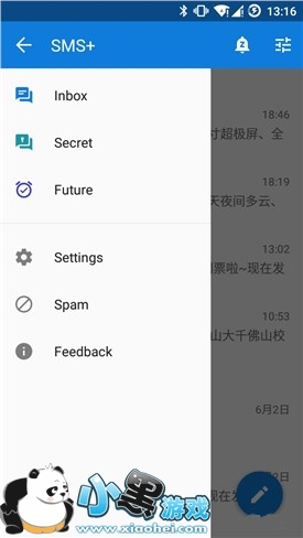 SMS+ 还支持双卡手机、字号调节以及滑动返回等功能。当然虽然官方没有能够推出完美的中文支持,不过小编觉得这不是什么问题,因为咱们小黑市场提供的是汉化版本,可以说是跟真正的完美又靠近了一些。