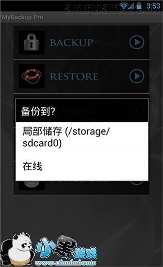 同时支持云端和本地备份备份的时候可以选择备份程序和数据,然后能备份到云端(需登录帐号)和SD卡,支持自定义备份文件名。