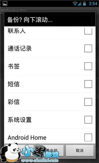 我的备份 MyBackup Pro对于常规的备份而言已经相当足够,就如大家所看到的一样,除了不支持软件和数据备份之外,其他的媒体都能全面的保存。就算是遇到刷机什么的也不会丢失数据和信息,真的相当实用。