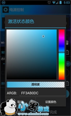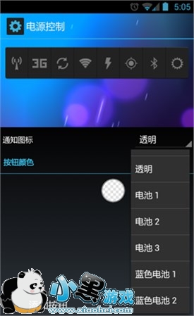 丰富的设置软件的强大之处在这里体现得很好,在设置里面,你可以DIY很多参数。比如设置电量更新间隔时间;自定义动态电池颜色,当电量到了一个标准数据时电池颜色就会更迭;如果你对手机默认的三阶屏幕亮度不满意,还可以自定义这三阶亮度的参数。还有很多其他选项,基本上都是为对应的快捷按钮而设置的。