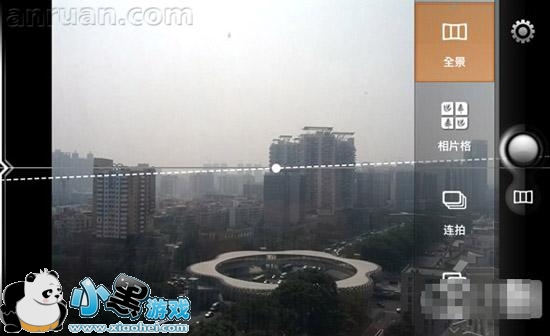 全景相机使用UCam的全景模式拍照必须把手机横放,相机界面有一根标准线,拍照时要保持水平线(虚线)与标准线重合才能拍出好的全景照片。不过毕竟是一个附加功能,全景照片的成像效果一般,特别是当取景不够远的时候照片衔接不顺畅,在拍远景的时候情况好一些。