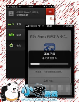 软件提供了很多设置功能,但是首要设置的就是下载中文语音套件。语音提示功能会在跑步的时候用到,运动的时候双击屏幕,软件就会用中文朗读跑步里程等数据内容。