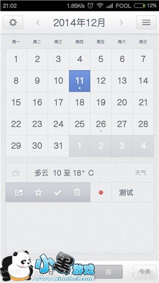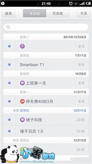 说明:由于锤子日历 for android 1.0 版在小米2S 上存在「点击右上角 List 按钮立即闪退」的 Bug,因此,这部分的图由其他机型补齐。