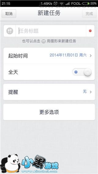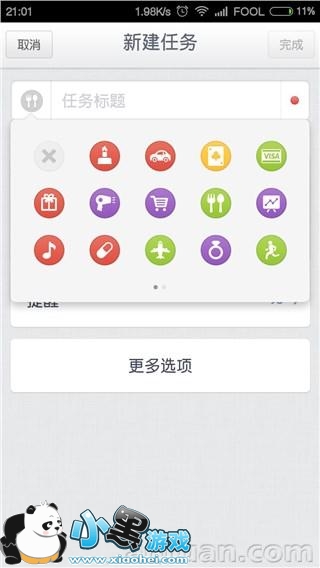你可以点击左下角的创建按钮创建新的任务,也可「长按日期」快捷创建任务。前者多适用于创建「未来」要完成的任务,而后者适用于创建「近期」要完成的任务。这里要提一点锤子日历的创新之处:「快速创建图形任务」,锤子日历精选了涵盖日常活动的 28 款精美图标,新建任务时只需选择一款图标,无需输入文字,即可快速创建任务。在 Smartisan T1 发布会上,老罗提到,如果你不是个交际花,那这些图标完全够用,基本不再需要输入文字了。尽管我自己平时事情比较多,文字任务占大多数,但这种方法会简化我的部分日程,是个不错的创新。