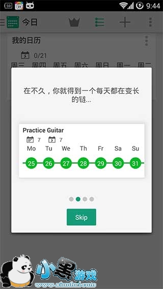 可以清晰显示在任务“链条”上,一眼就看出偷了多少懒,保持绿色会非常有成就感.
