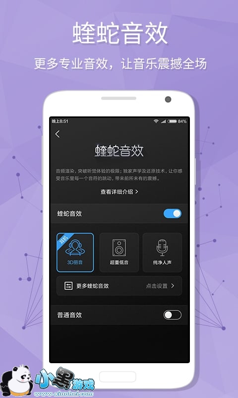 极致丽音,由蝰蛇(VIPER)专业打造的智能均衡环绕音。更有多种预设音效,让同一首歌也有不同的味道