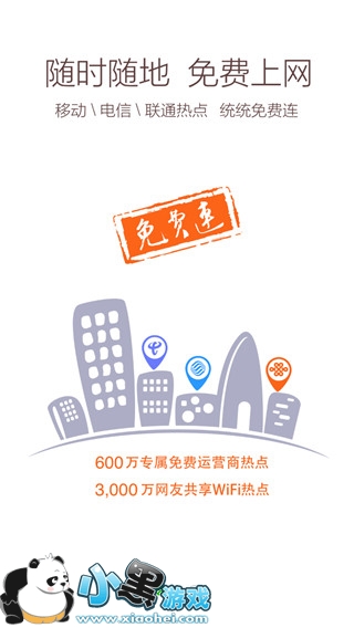 - 全国1.27亿WiFi热点,全覆盖,全免费;