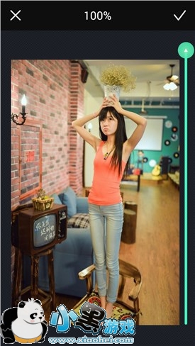 3. 点击下方的弹簧按钮,即可开始拉伸强度选择,拖动右侧的进度条即可制造苗条身段了。