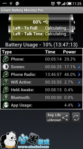 电池监控器 GSam Battery Monitor Pro是一款功能异常强大的电量监控软件,支持多种形式的电量估算、电量消耗历史记录和图表显示功能,从而可以让您更精确的得知电池电量的使用情况。