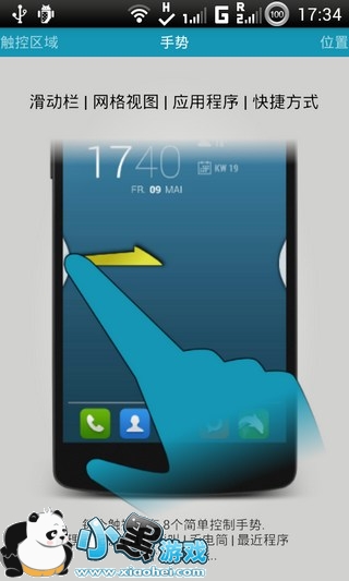 - 极低的电池消耗量,最多3个触摸区域开始手势(自定义大小,样式和位置)