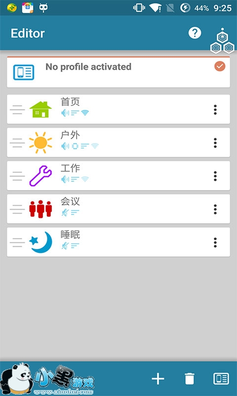 手机情景是类似CyanogenMod ROM中的情景或者老Nokia手机上的情景模式那样的功能。免费版只可以手动激活,自动行为激活功能需要高级版。