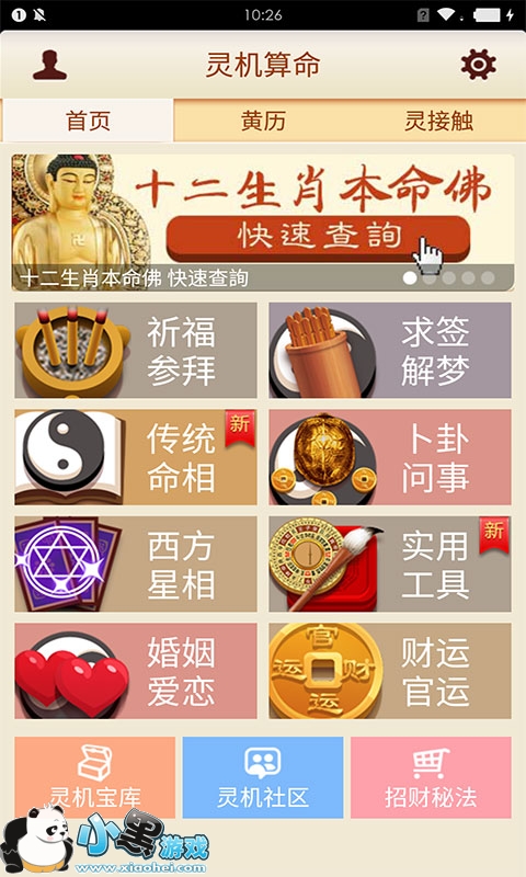 灵机妙算是一款综合型的算命应用程序,集灵仙卜卦,神签算运,生辰测命,姓名配对,生日密码,占卜前世,八字算命,Q号密语,手机号吉凶于一身的趣味占卜.精美的页面,有趣的互动.我们精选最精确的方式。