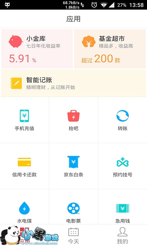 网银钱包客户端目前除充值、转账、提现、支付等基础功能外,还提供了水电煤公用事业缴费、手机记账等增值服务,并且整合了京东的消费金融产品“白条”服务及全新的理财产品“小金库”。
