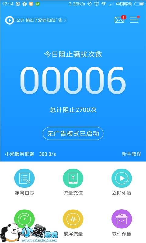 国内首款免设置全方位智能广告拦截软件,还您一个清静安全的上网空间! 蓝色小清新风格,美观纯净 ;安装后自动开启过滤引擎,无需其他复杂操作 ;手机有他,畅享看剧无广告!目前只支持视频客户端,不支持网页过滤。