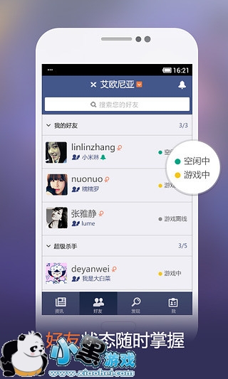 - 独家呈现游戏好友列表,随时随地让你掌握好友状态,订阅好友上线通知,APP直接与好友聊天。