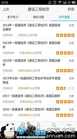 考试100是款手机端自我考试检查能力的安卓应用,可以你轻松通过考试!专业的手机考试平台,绝对实用的手机考试软件!考试100涵盖工程类、金融类、财会类、资格类、医药类、外语类、学历类、外贸类共8大类100多种考试。在考试100可以自由分享、查找、下载试题与重做错题,可以在线练习与模拟考试;章节练习更可以让你边看书边巩固复习。