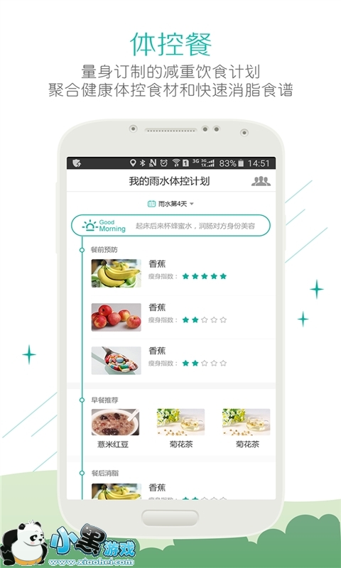 1、体控餐:量身定制一日三餐精准膳食计划,享受美食的同时健康体控。