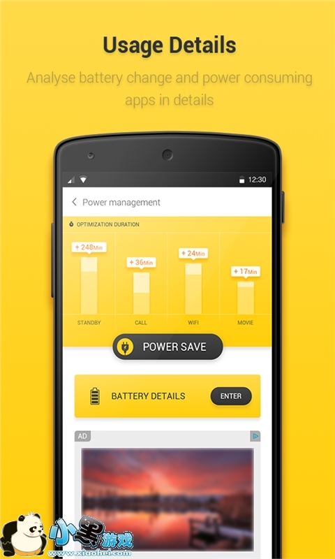 Yellow Battery 通过分析各应用使用电量的情况,给出手机中耗电应用的排行榜,让你随手掌握手机中的电池杀手,及时关闭那些耗电应用,让续航更持久。