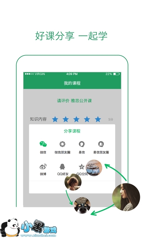 2、课程分享,支持推荐课程到朋友圈、微博、QQ。