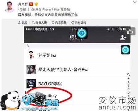 据可靠消息,微信已经在内侧一个新的功能了!那就是将已经删除你的好友加上显示,具体如下: