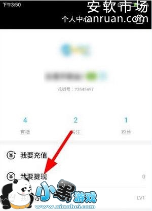 1、用户打开花椒直播客户端后,进入个人中心,然后点击“我要提现”,如下图: