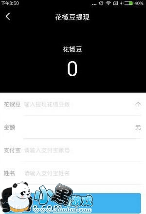 2、进入提现页面后,输入提现的花椒豆数量,填写支付宝账号和姓名,最后点击提现就可以了;