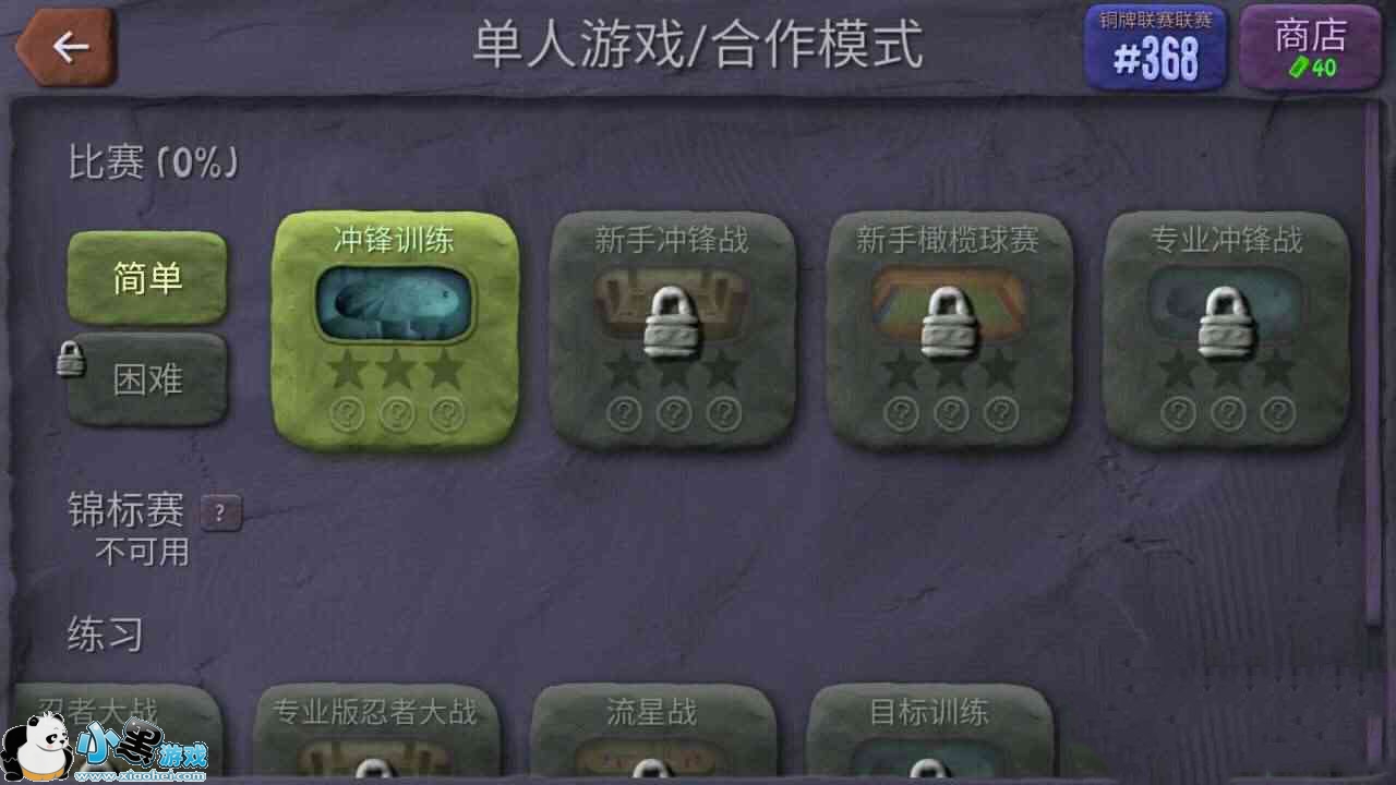 进入单人模式,但钱可选冲锋练习、新手冲锋战、新手橄榄球赛、专业冲锋战五种战斗模式。另外,还可以选择忍着大战、专业版忍着大战、流星战、目标训练以及专业版目标训练。