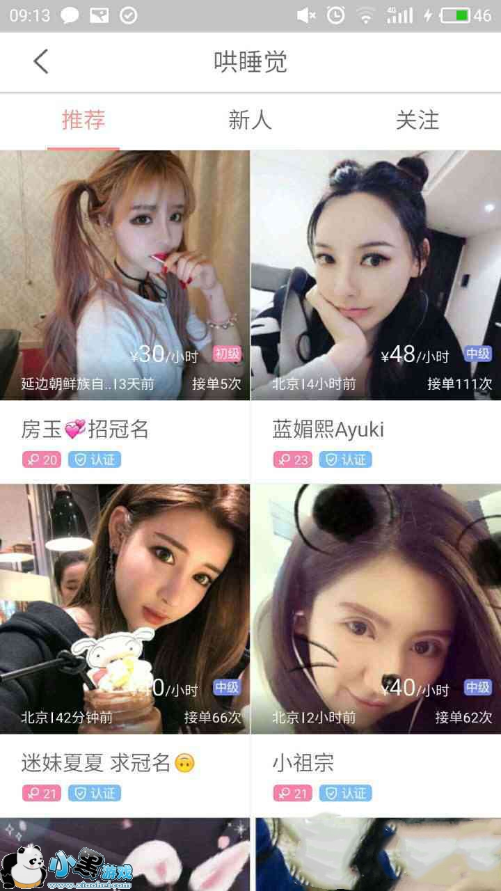 我没有玩过王者荣耀,也不习惯跟陌生人视频聊天,这里选择了“哄睡觉这个能工进入如下页面。大头贴都是一大波的美女啊,这里显示了他们哄睡觉的收费、接单的总数量以及年龄、等级。
