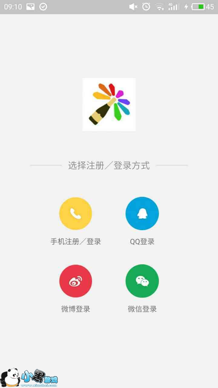 选择注册或者登录的方式,可供选择的有手机、QQ、微博以及微信四种方式。假如你觉得手机注册太麻烦了,可以通过社交软件直接授权登录。