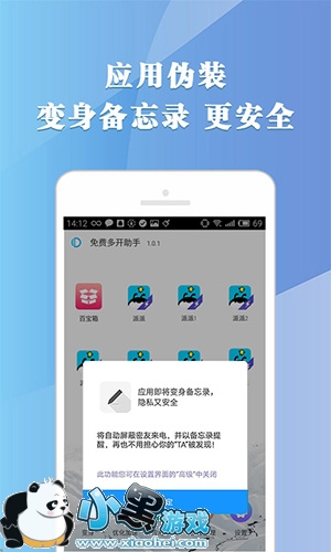 多开助手作为双开多开类应用值得信任的选择,安全不封号、稳定不卡顿、待机0耗电量、不限应用、免费无限多开。支持用户在一部手机上同时双开或多开同一个应用,如手机社交软件;电商类软件;生活类软件;娱乐类软件;游戏类软件双开、多开、分身;应用安全锁、私密空间等,一部手机轻松搞定,告别多账户切换带来的烦恼!