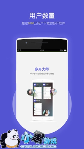 微信多开大师是一款帮微商、上班族、学生、商务族、风流族等实现在同一部手机上安装多个官方原版微信,每个微信独立运行,收发消息互不影响,实现微信的“双卡双待”。不修改微信,不涉及用户隐私。
