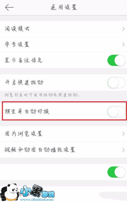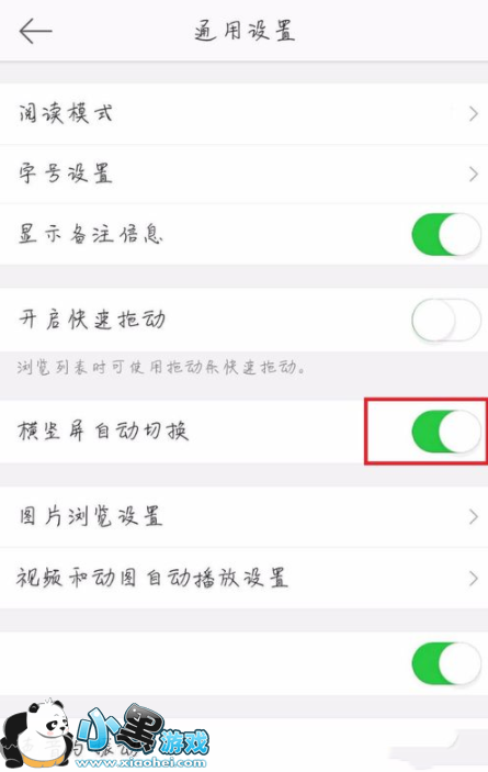 5.然后点击“横竖屏自动切换”旁的开关按钮(如图);